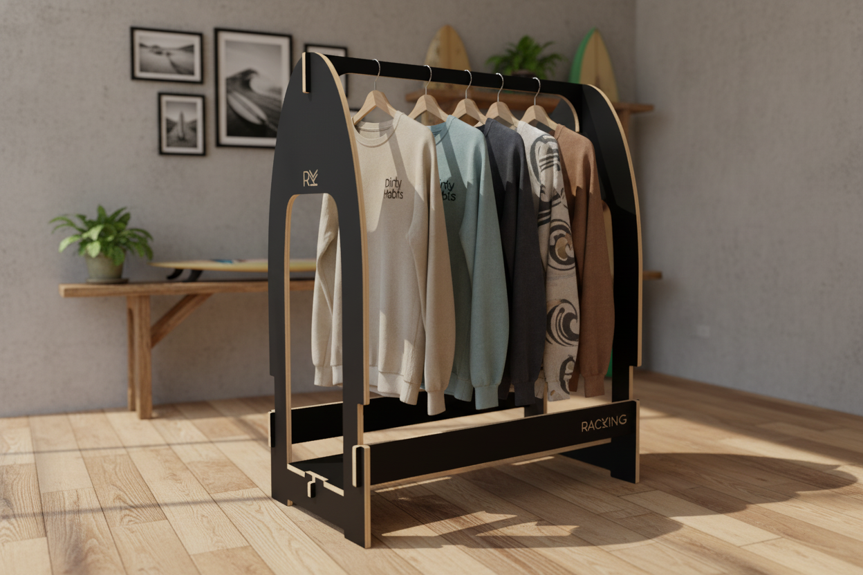 Pensé pour les univers glisse et lifestyle, ce portant vêtements allie robustesse, simplicité et efficacité. Idéal pour exposer et organiser des pulls, t-shirts, combinaisons, shorties, lycras et tout type de textile que l’on retrouve dans un surf shop.